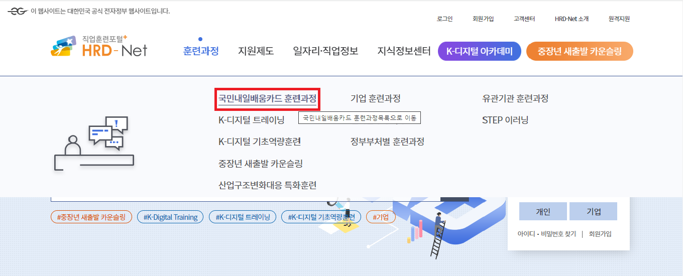취준생, 이직을 준비하거나 업무역량을 향상하고 싶은 직장인, 은퇴 후가 걱정인 중장년, 부업을 찾고 있는 n 잡러들을 위한 카드가 있습니다. 바로 "국민 내일배움카드"인데요. 직업 능력과 자
